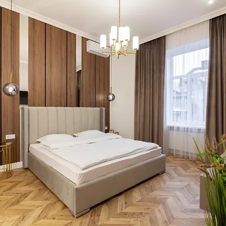 Cada habitación del establecimiento incluye una cocina completa con horno de microondas, hervidor eléctrico y utensilios de cocina. Puedes llegar a los restaurantes Art Maestro y el Batjar en 5 minutos a pie desde el apartamento. El aeropuerto Internacional de Leópolis está a 15 minutos en coche, y la parada de autobús Lystopadovoho Chynu, cerca de este alojamiento.